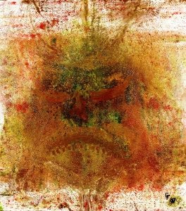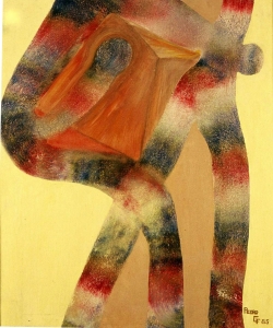 I was not expecting anything decent: layers of paint as I have seen so many times before. The first painting seemed to confirm my apprehension: it was a larva of a work. The second, at a half metre’s distance, a caterpillar: some evolution already evident, then, to a creature endowed with colours and feet, segmented and consequently equipped to go further afield. The third was superb: a butterfly with a splendid array of colour had taken flight. Will I speak in even more glowing terms of the fourth picture? No – rather than an evolution from a beautiful butterfly to some superior one, there is a leap from butterfly to precious stone, from precious stone to humble pebble, from pebble to cloud, and endless astounding metamorphoses: to pass from one painting to the next is to visit a collection of flights of fancy: from exotic butterfly to clump of earth, from there to astonishing shellfish, and on to stuffed animal, from caravel to cockleboat, and from bric to brac. Allow me merely to use this metaphor to sketch out a critical study: Pedro’s method (if method there be) consists of continuous moulting. It is, let us be clear, his brain which moults. Transformations such as there, quite common in fairyland, are less so in the world of art: he who paints boats persists in painting boats; it is rare for him to attempt airplanes. This is why one is so taken aback by the range of subjects, styles and forms in Pedro’s art. If humanity’s genius, as opposed to that of the animal kingdom, resides in the infinity of these mental metamorphoses, then Pedro is certainly no mental deficient. I am reminded of that poem by Michaux (“Still more changes”, from My properties) where the narrator assumes every form possible and imaginable, in an agonized cacophony. Pedro’s brain has given life to just such a protean world. I note here, therefore, a true genius of disjunction. The notion of transition, from which creation generally proceeds (like the passage from one era to the next, degree by degree), is here not current.